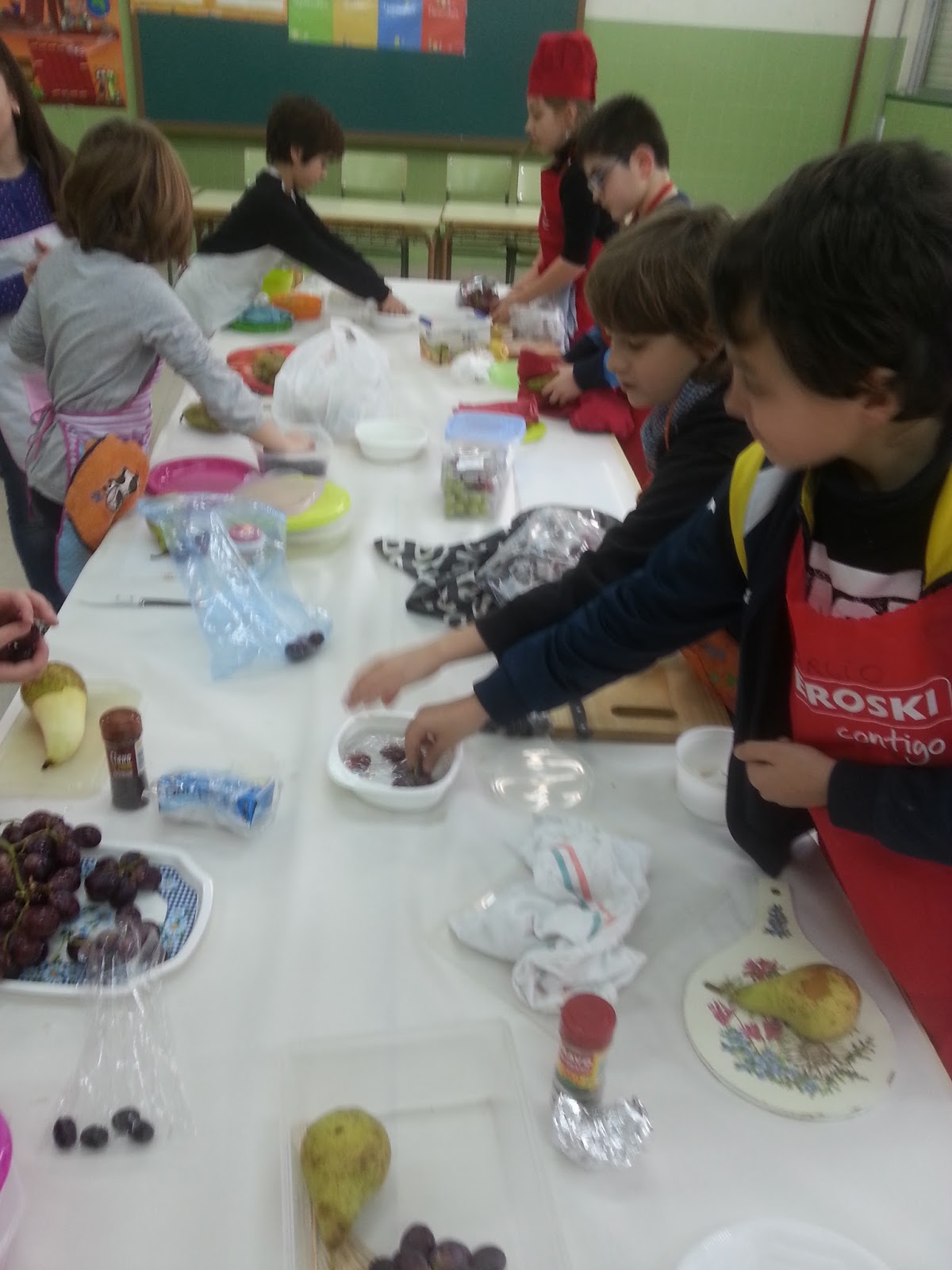 They are pretty easy to do really. WE used a pear, some grapes, toothpricks, a black olive and lots of enthusiasm as always.